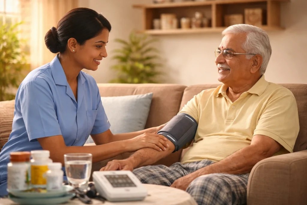 Elderly home nursing care involves trained nurses or caregivers providing medical, physical, and emotional support to senior citizens in their own homes. It bridges the gap between hospital care and family support—ensuring safety without removing dignity.